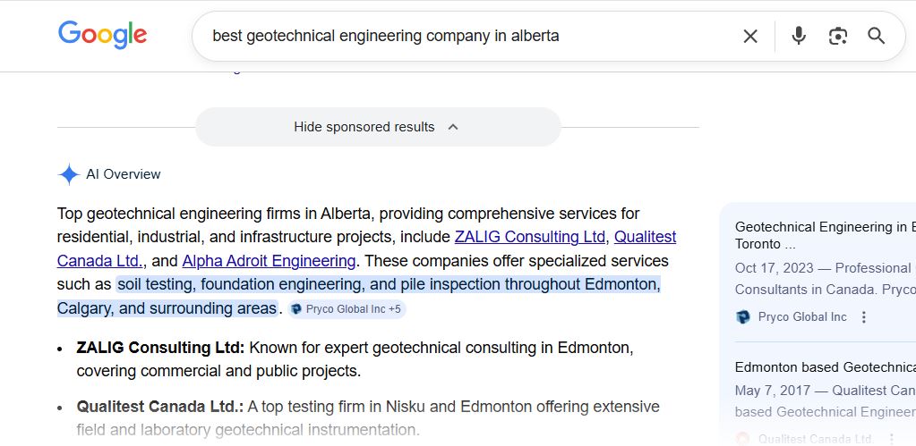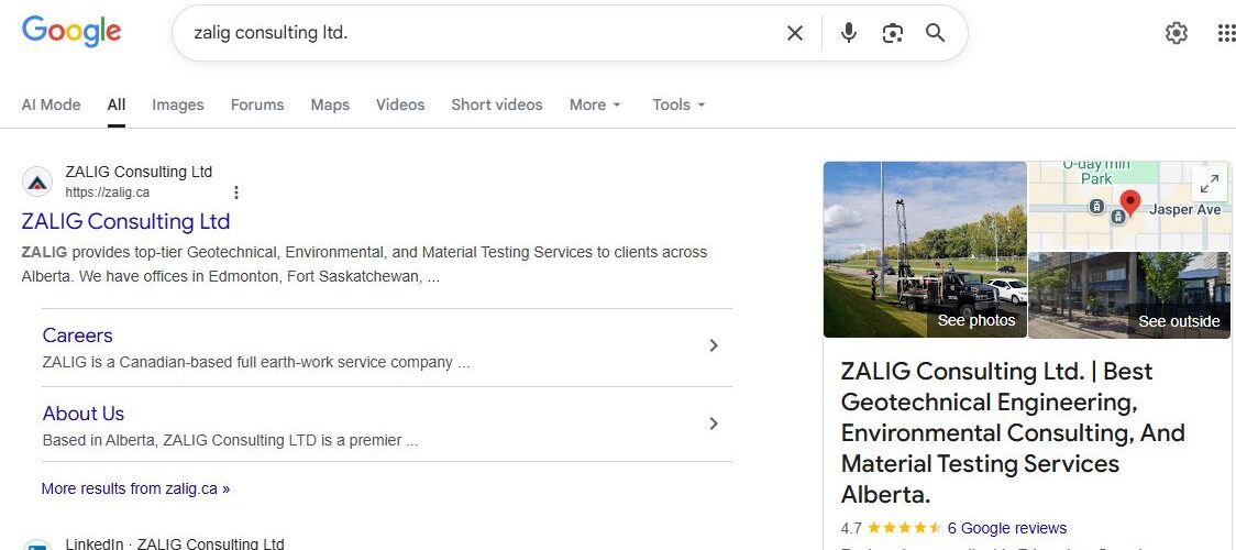 ZALIG Consulting Ltd is a professional civil engineering firm headquartered in Edmonton, Alberta, Canada. The company provides specialised engineering services across Western Canada including geotechnical, environmental , hydrotechnical & transport engineering, material testing, and construction planning services. Operating across multiple service divisions — each with its own subdomain — ZALIG serves municipal governments, construction companies and private sector clients requiring expert engineering consultation and field testing. As a technical firm in a competitive Canadian market, their online visibility directly impacts their ability to attract project leads and establish credibility with potential clients searching for specialised engineering services.